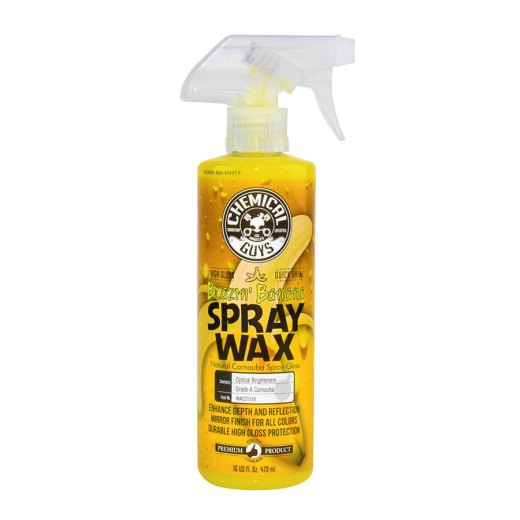 Chemical Guys Blazin’ Banana Spray Wax allows you to keep your car with a brilliant shine wherever you are. While paste and cream waxes take a lot of time, the Blazin’ Banana spray wax application process simply takes a few seconds with each spray. Blazin’ Banana Spray Wax not only gives you an unmatched shine, but also offers protection against harmful UV rays, pollution, contamination, and water spots. Simply apply the Blazin’ Banana spray wax to clean paint, glass or clear plastic, let dry, then wipe with a clean microfiber towel.