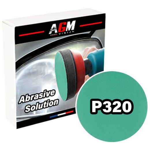 P320 abrasive disc, allows for fast sanding to remove the most resistant varnishes from certain German headlight lenses. Note that this P320 sanding paper removes a lot of material quickly, as it has large and widely spaced aluminum oxide grains for maximum efficiency.