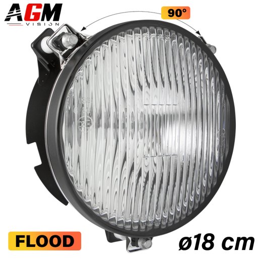 Descubra nuestro Faro 18CM, vendido sin bombilla. Prevea una bombilla de referencia H3 para la instalación en el interior. Equipado con un soporte de fijación perforado y desmontable para una mayor adaptabilidad. (ver clips blancos en las fotos) Este faro le ofrece un amplio rango de ajustes en altura y laterales, permitiendo un ajuste preciso del haz de luz. En términos de iluminación, se trata de un Flood tipo Antiniebla ancho, ilumina eficazmente los lados, gracias a un cristal completamente estriado.