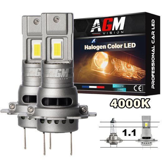 Illuminazione bianco caldo 4000K, potente, dimensioni simili a una H7 alogena. Con la sua tonalità bianco caldo 4000K, vicina al colore originale (bianco/giallo), garantisce una discrezione perfetta nei confronti degli altri utenti della strada. Questa tonalità di illuminazione preserva l'estetica originale del tuo veicolo offrendo al contempo una migliore visibilità in condizioni di tempo secco e piovoso, con meno riflessi sulla carreggiata e sui cartelli rispetto a un bianco freddo 6000K.