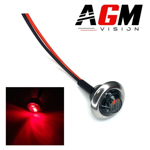 スモークブラックの丸型LEDマーカーランプ 12V、3チップLED、赤色、Ø 2 cm。