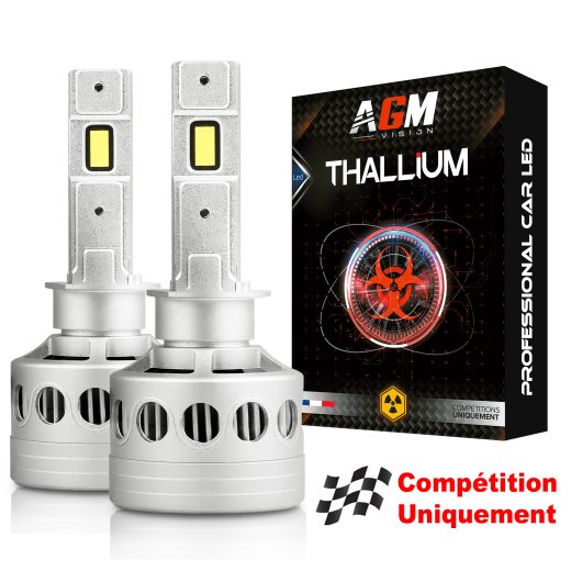De LED H1 Thallium kan in één woord worden samengevat: EXTREEM. De naam is verwant aan een uiterst giftig vergif; u zult later begrijpen waarom. Het bestek van de LED H1 Thallium lamp kende geen enkele beperking wat betreft de lichtkracht. Met zulke instructies is het gebruik van dit soort LED niet voor iedereen weggelegd. De helderheid is zodanig dat precisie uiteraard moeilijker te beheersen is, wat volkomen logisch is.Wij raden deze LED vooral aan voor dimlichten, maar alleen als de koplampen lenstype zijn. Ze mag niet gebruikt worden in reflector koplampen, omdat haar vermogen te hoog is. Daarentegen is ze ideaal voor grootlichten waar ze haar volledige potentieel kan tonen, zowel met reflector- als lenstype koplampen.De LED H1 Thallium lamp is de krachtigste uit ons hele assortiment met 85 watt en 16 000 ruwe Lumen per lamp, oftewel 170 watt en 32 000 ruwe Lumen voor 2 lampen. Ze staat ver bovenaan het podium van de krachtigste LED's zonder dat het nodig is de doorsnede van de elektrische voedingsdraden te veranderen. Bestemd voor liefhebbers van extreem licht voor de competitie, de rally, en niet te vergeten de Off Road.