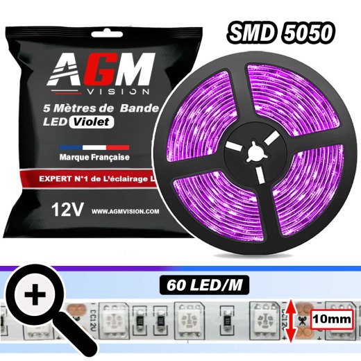 Le produit 12 V LED-strip van 5 m, SMD 5050, violet 60 LED/m, IP20 niet waterdicht en 1 cm breed