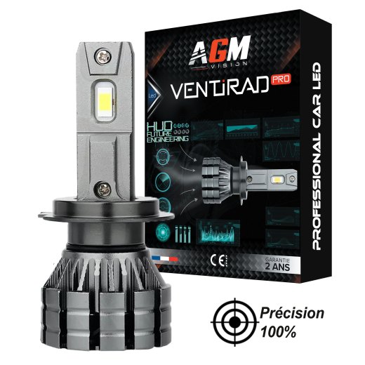 La LED H7 Ventirad PRO rassemble toutes les qualités les plus recherchées par les automobilistes et routiers pour un éclairage de qualité : puissant, précis, avec une densité et une couverture lumineuse impressionnantes. Dimension très compacte, à peine 32 mm de diamètre, facile à installer grâce à une bague de montage 360° et une connectique H7 Plug&Play. La LED H7 Ventirad Pro est une All in One avec ventilateur de refroidissement et module Can-Bus intégré. Celle-ci possède un bon niveau d'anti-erreur de base mais peut être améliorée à l'aide d'un module Can-PRO H7 additionnel pour renforcer son efficacité, notamment pour les véhicules très récents et premium type : Mercedes, Volkswagen, etc.