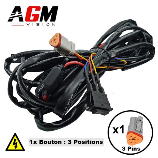 Faisceau bouton/relais 3 pins pour barre LED avec une seule veilleuse intégrée.