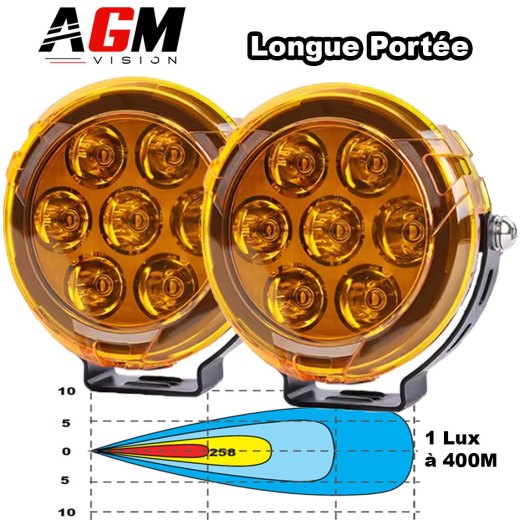 KIT 2 Phares LED Jaune Moto 7X-Pro Longue Portée 140W - 18000 Lumens