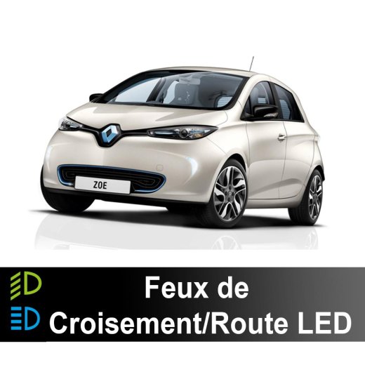 Pack feux de croisement/route LED Renault Zoe phase 1 2012 à 2019 - 90 watts - 15 300 lumens