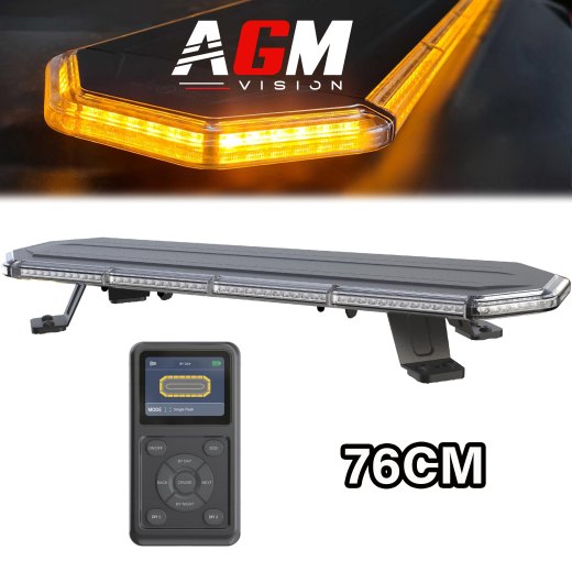 Découvrez la Rampe LED Gyrophare Dark Slim Série 76cm, 110 watts, offrant un éclairage entièrement orange. Un modèle haut de gamme équipé d'une télécommande Bluetooth sans fil. Cette version propose plus de modes (14 modes + 1 mode SOS) et de fonctionnalités que la version standard avec télécommande filaire. L'installation est simplifiée et accélérée grâce à la technologie Bluetooth : plus besoin de passer des fils, ni de gérer l'encombrement lié à ces derniers.