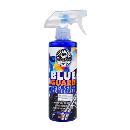 Chemical Guys Blue Guard II est un produit qui restaure les plastiques et les caoutchoucs extérieurs délavés. La formule du Blue Guard pénètre en profondeur pour hydrater, restaurer et protéger les garnitures en leur apportant une brillance éclatante. Utilisez Blue Guard II sur les pare-chocs, les pneus, les baguettes de porte, les moulures de fenêtre, les bas de caisse et bien plus encore. Blue Guard II nourrit et protège grâce à un polymère unique, des bloqueurs d'UV et des imperméabilisants pour que vos pièces restent plus noires plus longtemps.