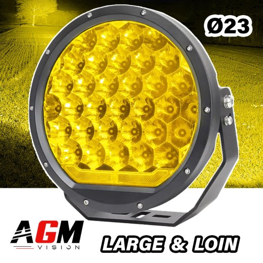 PHARE ADDITIONNEL LED ROND JAUNE MAX-POWER 165W - Éclairage combinaison + longue portée - Ø 23 cm - Voiture, Camion